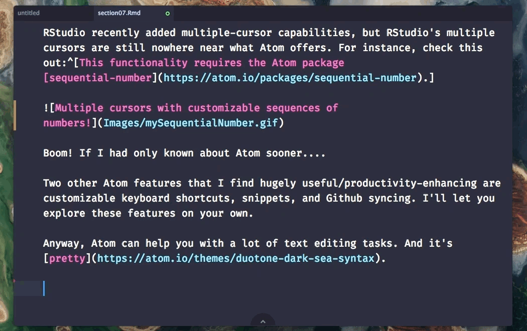 It had git integration and works well with r and r markdown (i use knitr a lot to generate reports). Here's a link to atom's open source repository on github. Atom is an open source tool with 49.3k github stars and 12.1k github forks. It had git integration and works well with r and r markdown (i use knitr a lot to generate reports). 21.03.2020 · r in atom editor tutorialrun r code in atom editordebug r in atom editoratom editor cannot find r client On the other hand, heavyweight python editors like pycharm don't quite do. I use atom for other programming languages, but since most of my work is in r i have come to highly value the tools that come with rstudio.. I use atom for other programming languages, but since most of my work is in r i have come to highly value the tools that come with rstudio.