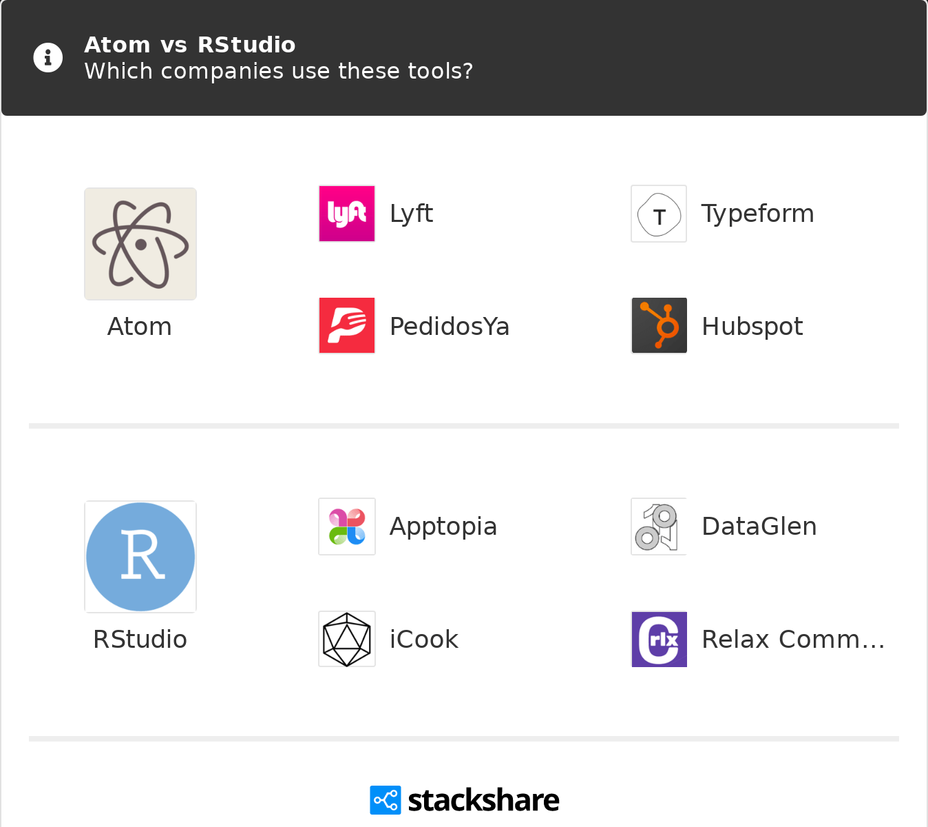 Here let's use the chickweight data set where considering the weight. Lyft, typeform, and pedidosya are some of the popular companies that. It might take a little while to learn all the bells and whistles, but you can also learn those features as you need them. Im trying to make a discord bot, and every time i run it it returns: Here's a link to atom's open source repository on github. 25.03.2018 · although rstudio is really awesome when working with r, it is of absolutely no help when working with python or any other language. Python ides are all over the place. I use atom for other programming languages, but since most of my work is in r i have come to highly value the tools that come with rstudio. On the other hand, heavyweight python editors like pycharm don't quite do. Atom belongs to text editor category of the tech stack, while rstudio can be primarily classified under integrated development environment.. Here's a link to atom's open source repository on github.